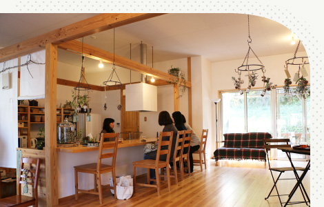 広い空間を利用して、かねてからの希望だったアロマのワークショップやヨガ教室を開いています。教室の後、フットバスをするのですが、床が土間なので水で塗れても気にしなくていいのも気に入ってます。なんといっても、広い空間なので気兼ねなく人を呼べます。