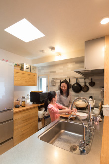 奥様:キッチンの吊り下げ収納用のバーも、最後の最後で「低くしたい」と言って対応していただきました。できることは最大限やってくれる、だから「無理」という言葉にも納得できました。まあずいぶん食い下がりはしましたけれど(笑)。
