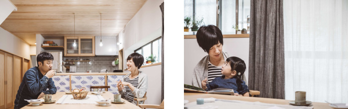 奥様:キッチン、そしてリビングダイニング。キッチンは小さな棚を付けてもらったり、ああしたいこうしたいを聞いてくれて実現してくれました。